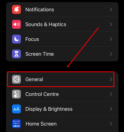 1. Mennä iPhoneenAsetukset> Yleinen.