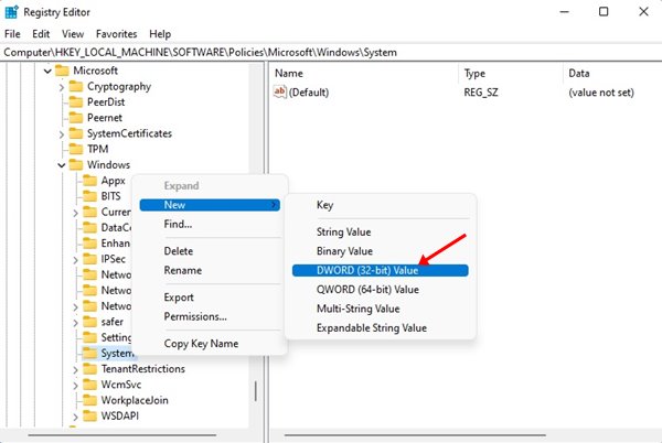 HKEY_LOCAL_MACHINESOFTWAREPoliciesMicrosoftWindowsSystem