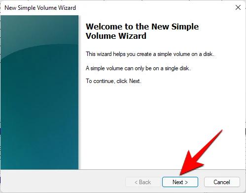 - Valitse jaeton tila ja napsauta hiiren kakkospainikkeella sitä. Napsauta nytUusi yksinkertainen tilavuusuuden osion luominen.