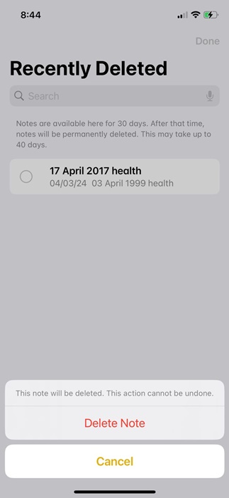 4. Poista Äskettäin poistetut muistiinpanot iPhonesta
