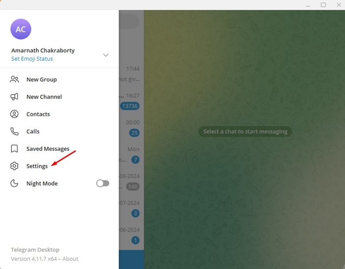1. Käynnistä tietokoneesi Telegram Desktop -sovellus.