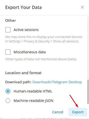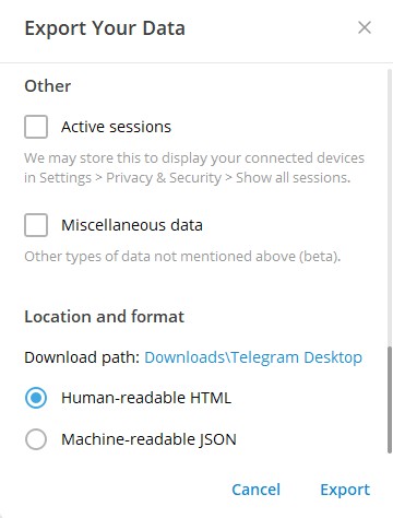 Kuinka viedä Telegram -chat -historia yhden kontaktin kanssa