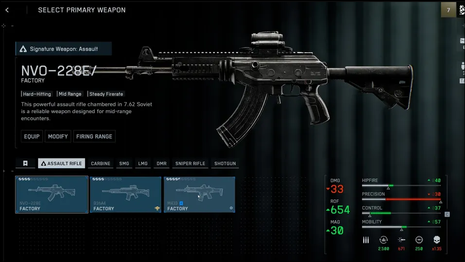 - NVO-228E (RAKENNUSKIFLE):Tämä rynnäkkökivääri tarjoaa vahvan yhdistelmän hallittavissa olevaa takaa ja suuria laukausta kohden, mikä on erinomainen keskitason kohtaamisissa. Sen vakaus ja johdonmukainen suorituskyky ovat tehneet siitä suosikki kilpailevien pelaajien keskuudessa.
