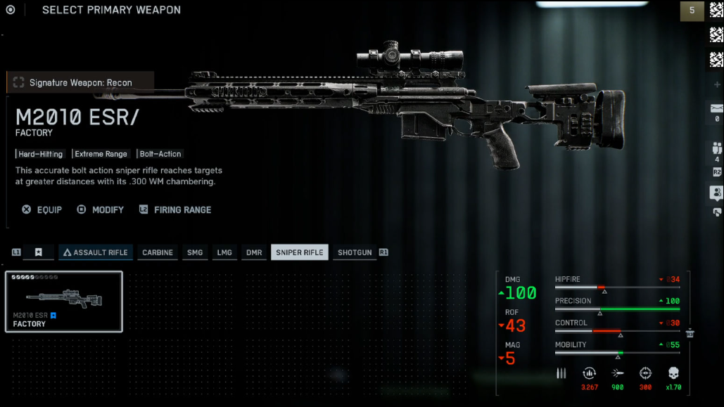 - M39 EMR (DMR):M39 EMR on monipuolinen Marksman-kivääri, joka tuottaa luotettavia vaurioita ja tarkkuutta keskialueella. Sen korkeampi palonopeus verrattuna muihin DMR: iin tekee siitä anteeksiantavan kiireisissä taisteluissa.