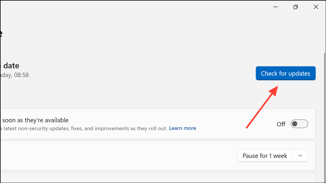 Vaihe 2:NapsauttaaTarkista päivityksetja asenna kaikki käytettävissä olevat päivitykset.