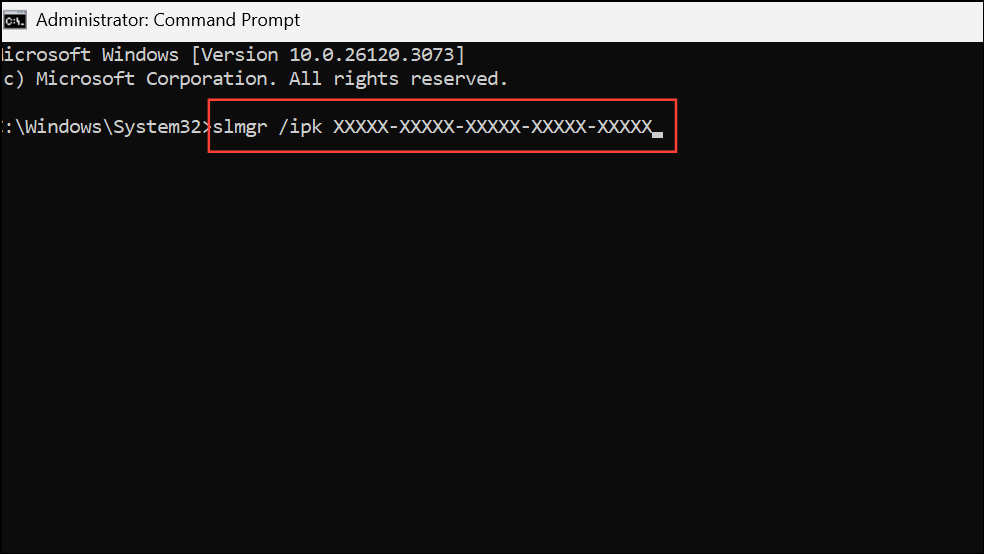 slmgr /ipk XXXXX-XXXXX-XXXXX-XXXXX-XXXXX