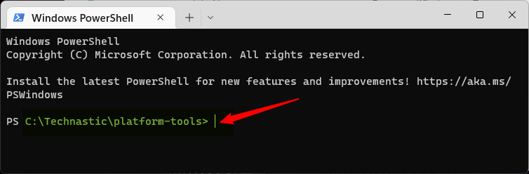 - Jos olet tehnyt sen oikein, näet polunalustotyökaluKansio komentokehotusikkunassa alla olevan kuvan mukaisesti.