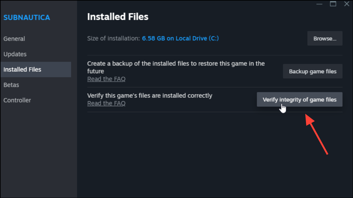 Vaihe 1:Napsauta höyrykirjastossa hiiren kakkospainikkeella kärsivää peliä ja valitse ”Ominaisuudet”. Siirry ”Asennetut tiedostot” -välilehteen ja napsauta “Vahvista pelitiedostojen eheys”.