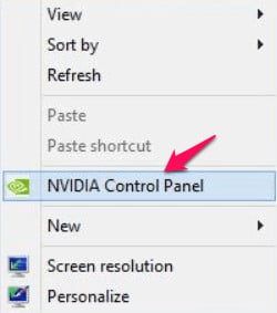 1. Napsauta hiiren kakkospainikkeella työpöydällä olevaa tyhjää aluetta ja valitseNVIDIA -ohjauspaneeli.