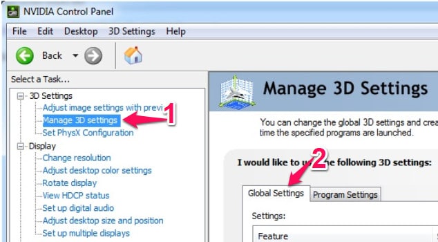 2. Valitse ”Hallitse 3D -asetuksia”Ohjauspaneelin vasemmalla puolella, kun se on ilmestynyt.