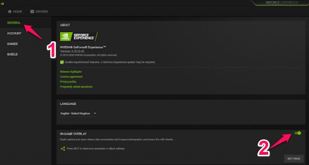 3. Mennä "Yleinen”-Välilehti GeForce Experience -ikkunassa.