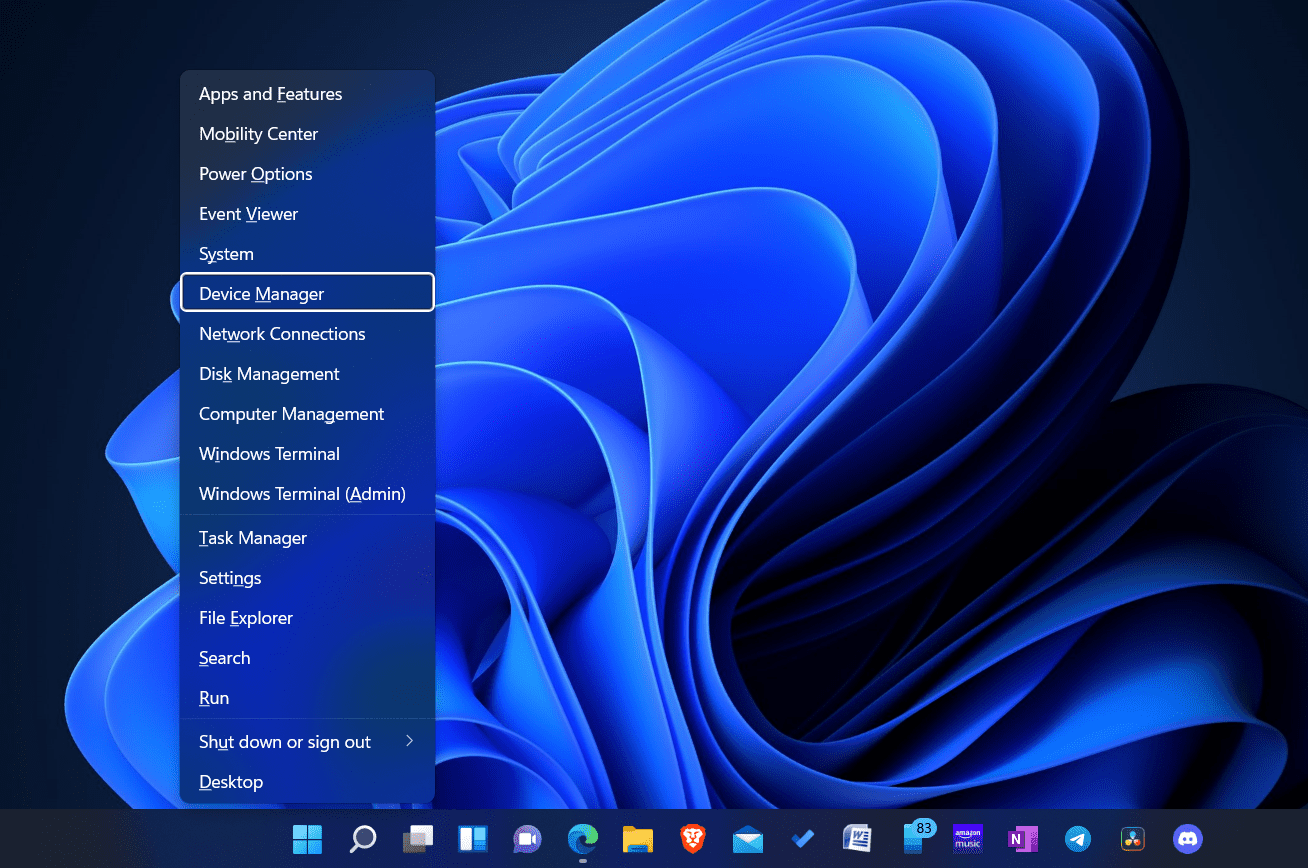 - PainaWindows + xNapsauta avainyhdistelmä, ja sitten napsauta valikostaLaitehallinta.