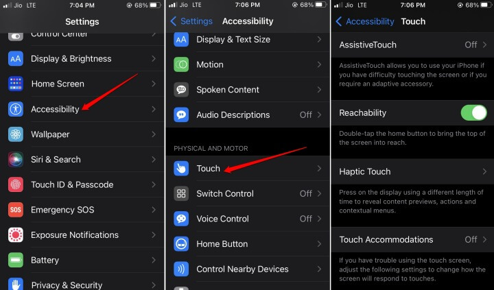 1. Mennä jhkAsetukset> Esteettömyys> Koskettaa.