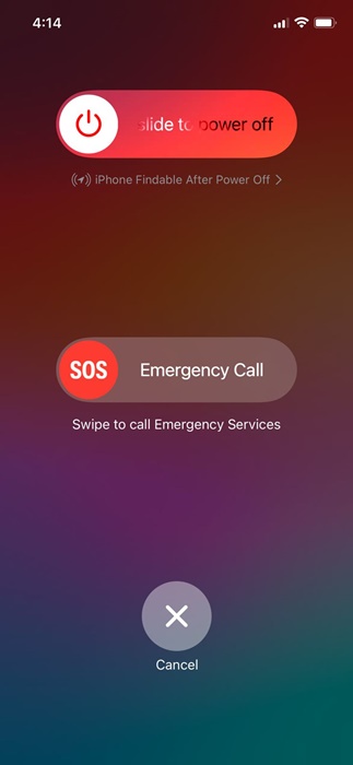 Käynnistä iPhone uudelleen pitämällä sivu- ja äänenvoimakkuusnäppäimiä painettuna. Tämä avaa virtavalikon; yksinkertaisesti liu'uta sitä sammuttaaksesi sen.