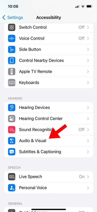 3. Napauta esteettömyysnäytössäAudio/Visuaalinen.