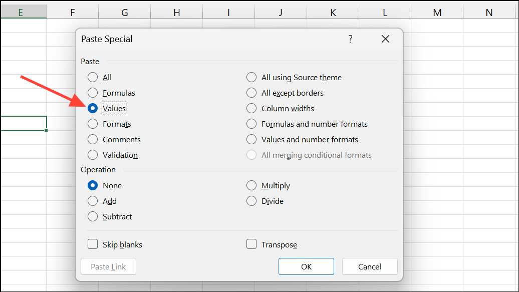 Vaihe 3:Valitse Liitä erityinen valintaikkunasta sopiva vaihtoehto (kutenArvot-KaavattaiMuodot) ja vahvistaaHyvä.