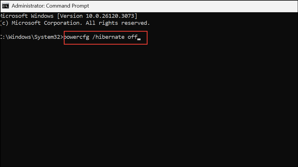 Tämä komento poistaahiberfil.systiedosto, vapauttaen tilaa heti. Jos haluat ottaa käyttöön uudelleen lepotilassa myöhemmin, käytäpowercfg /hibernate on.