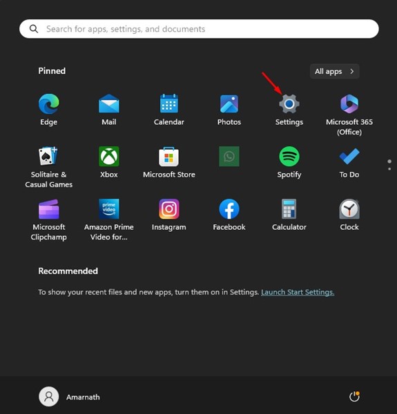 1. Napsauta Windows 11 Käynnistä -painiketta ja valitseAsetukset.