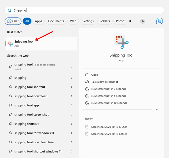 - Käynnistä Snipping Tool -apuohjelma Windows 11 -hausta.
