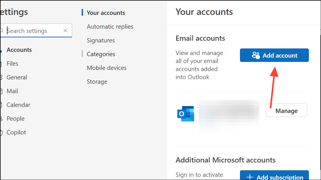 Vaihe 1:Näkymässä siirry osoitteeseenFile > Account Settings > Manage Profiles. Vaihtoehtoisesti poistuvat näkymät ja avoinnaMailOhjauspaneelista. NapsauttaaShow Profilesja sittenAdd accountUuden profiilin luominen. Kirjoita nimi ja aseta tilisi tiedot.