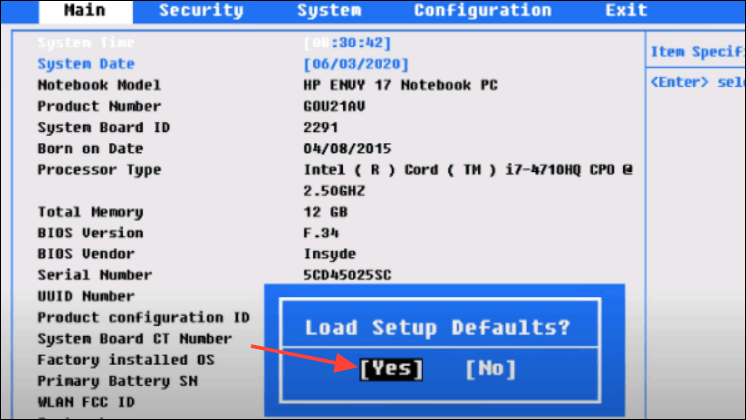 Vaihe 2:Päivityksen jälkeen kirjoita BIOS uudelleen. Etsi vaihtoehto "palauttaa tehdasasetukset" tai "Palauta oletusasetuksiin". Käytä tätä nollausta tyhjentääksesi väärin määritettyjä asetuksia, jotka voivat estää turvallisen käynnistyksen aktivoinnin.