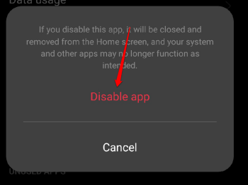 3. NapautaPoistaa käytöstävaihtoehto. Tämä poistaa väliaikaisesti kamerasovelluksen käytöstä.