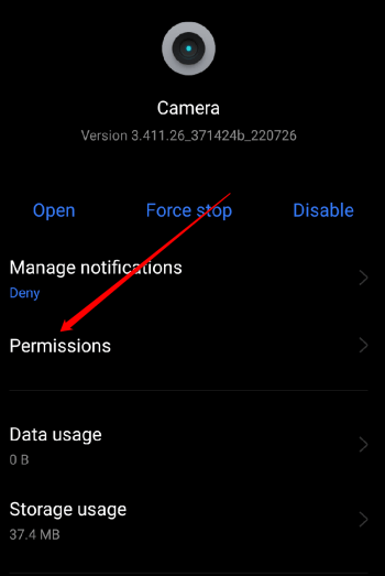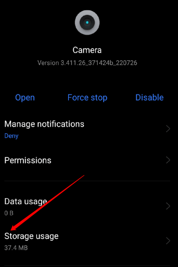 1. Avaa laitteenAsetukset> Sovellukset> Sovelluksen hallintavaihtoehto> Kamera.