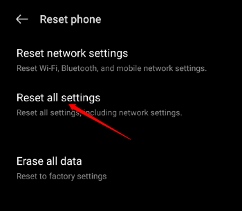 2. ValitaVarmuuskopioi ja nollaa> Nollaa puhelin.