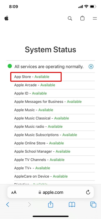 Pahimmassa tapauksessa saatat kohdata myös vaikeuksia käyttää APP -luetteloon. Siksi, jos et vieläkään pysty ratkaisemaan Slow App Store -latausongelmaa, on aika tarkistaa App Store -palvelimen tila.