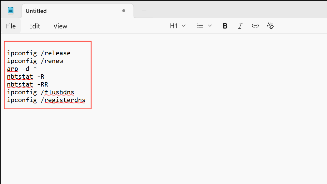 Vaihe 1:Avaa muistiinpano ja liitä seuraavat komennot: