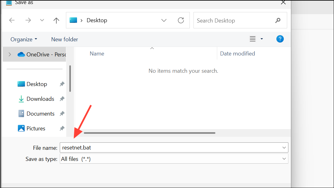 Vaihe 2:Tallenna tiedosto nimelläresetnet.battyöpöydälläsi.