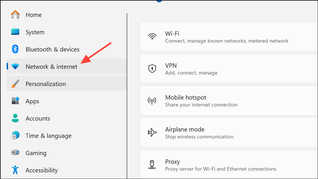 Vaihe 1:Avaa Windows 11: n WiFi -asetukset napsauttamalla järjestelmälokeron verkkokuvaketta ja valitsemallaNetwork & Internet settings.