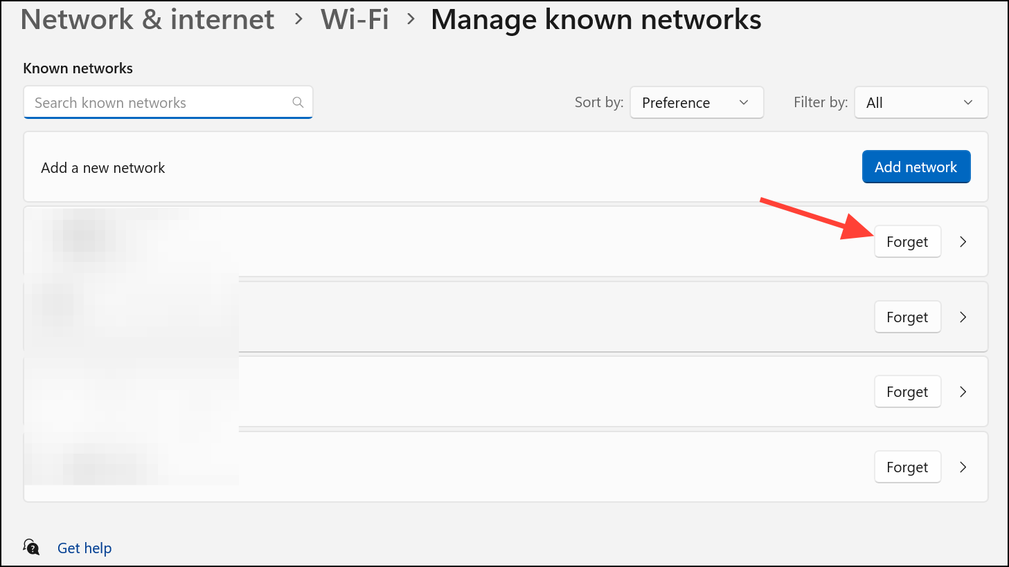 Vaihe 2:NapsauttaaWiFi, napsauta sittenManage known networks. Etsi verkko, napsauta sitä ja valitseForget. Ota yhteys uudelleen valitsemalla verkko WiFi -luettelosta ja syöttämällä salasanasi. Tämä palauttaa yhteysprofiilin, joka voi ratkaista pysyvät hidastumiset unen jälkeen.