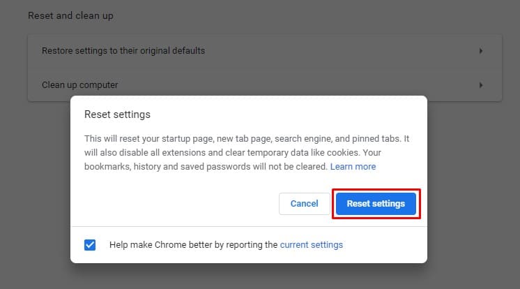 Nollauksen tulisi olla viimeinen keino, jos mikään muu ei auta "Media ei voitu ladata" -virhesanoman korjaamiseksi. Nollaa Chrome-selaimesi seuraavasti.