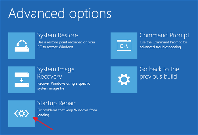 4. Valitse seuraavassa näytössäKäynnistyksen korjaus.