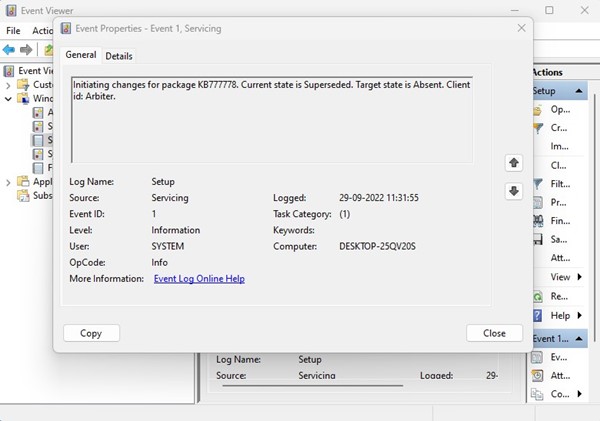 Event Viewer pitää kirjaa kaikista virheistä. Joten voit käyttää Windows Event Vieweria löytääksesi tarkalleen, mikä estää tietokonettasi asentamasta Windows 11 -päivitystä.