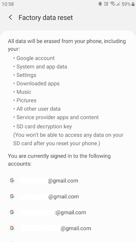 Jos mikään yllä olevista ratkaisuista ei toimi, voit palauttaa laitteen. Huomaa kuitenkin, että Android -puhelimen palauttaminen poistaa henkilökohtaiset asetukset ja muut tiedot. Se asettaa Android -asetukset oletusarvoon.
