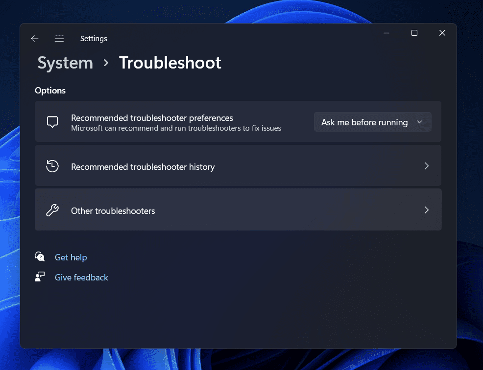 Windows 11: n sisäänrakennettu työkalu on Windows 11: n sisäänrakennettu työkalu, jonka avulla käyttäjät voivat korjata/vianmääritys useimmista ongelmista, joita he voivat kohdata tietokoneellaan. Sinun tulisi yrittää käyttää verkkosovittimen vianetsintä korjataksesi Wi-Fi-kuvakkeen puuttuvan Windows 11: stä. Seuraa alla olevia vaiheita suorittaaksesi verkkosovittimen vianetsijä-