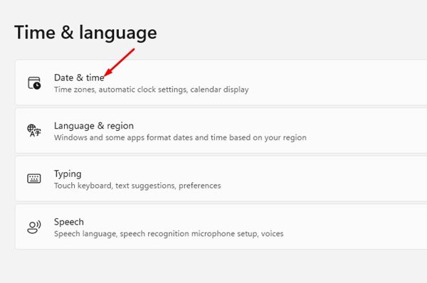 3. Napsauta Time & Language -osiossaPäivämäärä ja aika.