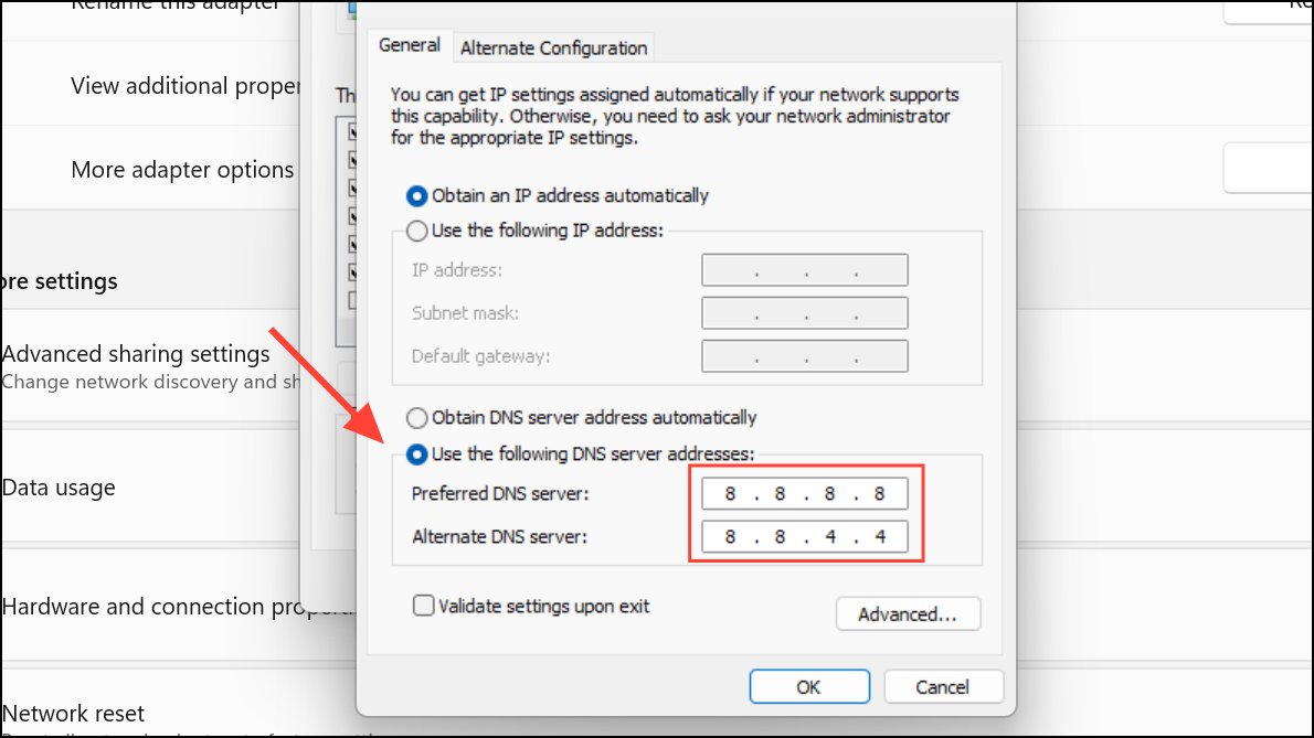 8.8.8.8 - Vaihtoehtoinen DNS -palvelin: