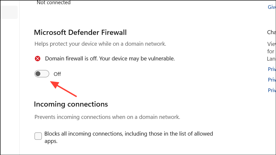 Vaihe 1:Mennä jhkSettings→Privacy & Security→Windows Security→Firewall & Network protection.