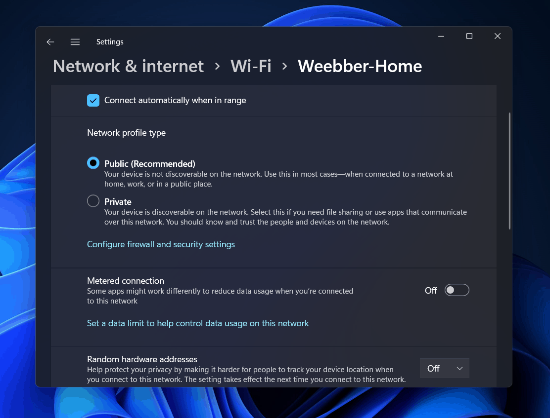 - AvaaAsetuksetsovellus ja siirry sittenVerkko ja Internetosa vasemmasta sivupalkista.