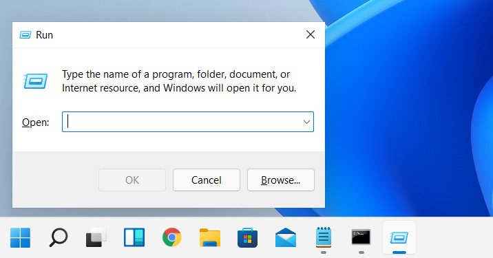 - PainaWindows + Ravainyhdistelmä, joka avautuuSuorita valintaikkuna.