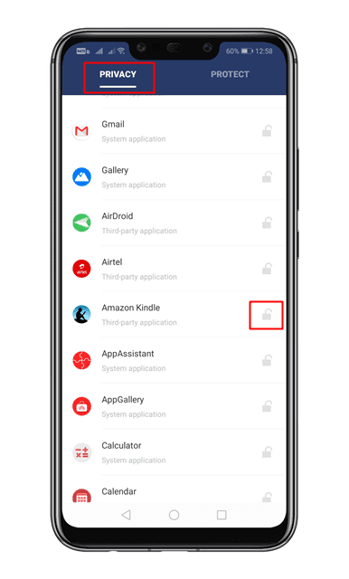 6. ValitseYksityisyysvälilehti ja vieritä alas. Näet luettelon laitteeseesi asennetuista sovelluksista.