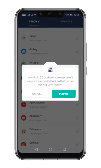 7. Napauta lukituspainikettasovelluksen takanalukita se. Sinua pyydetään nyt myöntämään lupa. Varmistamyöntää lupaSovelluksen sulkeminen.