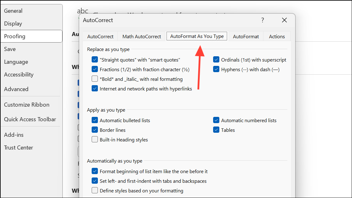 Vaihe 2:NapsauttaaAutomaattiset vaihtoehdot…ja avaaAutomaatti, kun kirjoitatvälilehti.