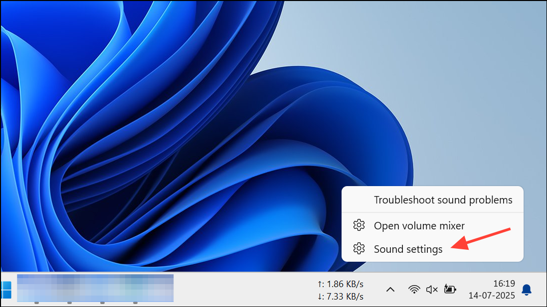 Vaihe 1:Napsauta hiiren kakkospainikkeella kaiutinkuvaketta tehtäväpalkissa ja valitseAvaa ääniasetukset.