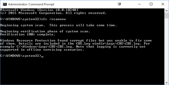 4. Jos löydät virheraportin "Windows Resource Protection löysi vioittuneita tiedostoja, mutta ei voinut korjata joitakin niistä", käynnistä tietokoneesi uudelleen vikasietotilassa ja suorita komento.