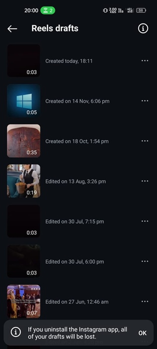 Instagramilla on luonnosominaisuus, jonka avulla voit tallentaa keskeneräisen videonmuokkauksen. Entä jos haluat tarkastella sitä keskeneräistä projektia puhelimen kameralla?