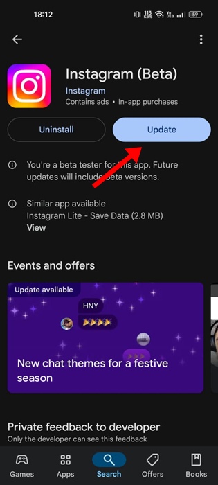 Instagram -luonnoskelojen tallentaminen galleriaominaisuuteen on saatavana sovelluksen uusimmasta versiosta. Joten sinun on ensin päivitettävä Android Instagram -sovellus.